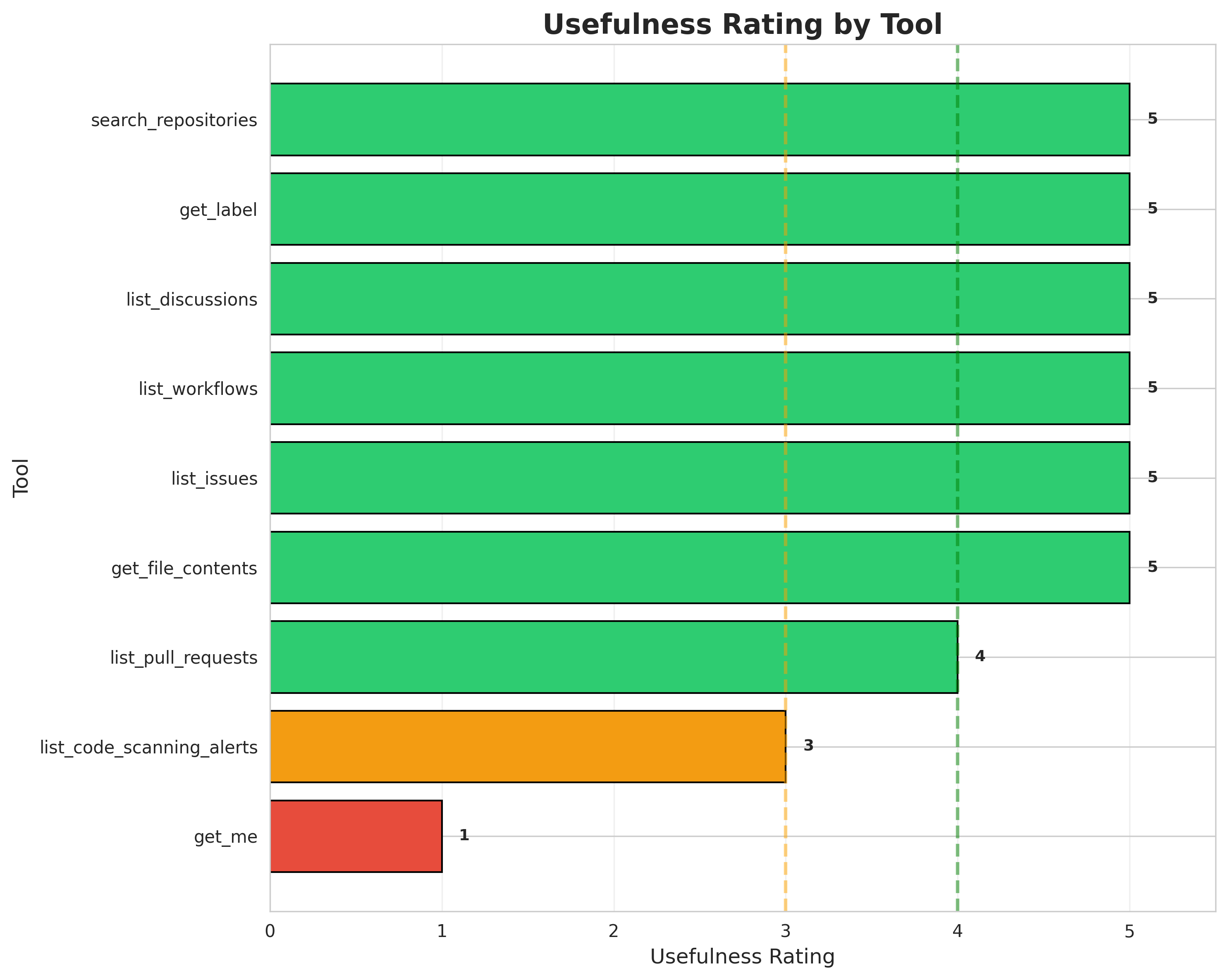 Key Findings: Most tools (7 of 9) received excellent usefulness ratings (5/5), demonstrating well-designed APIs. However,