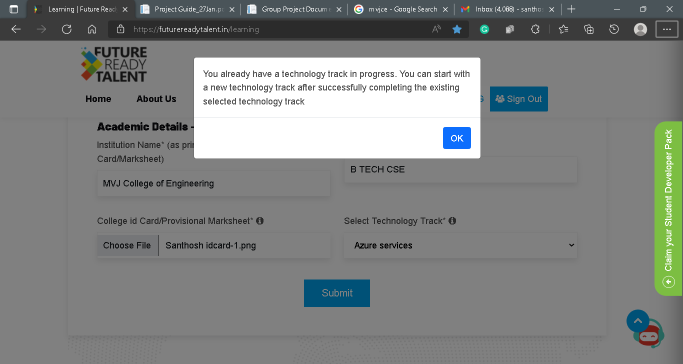 I am getting this message while filling in my academic details for the first time.