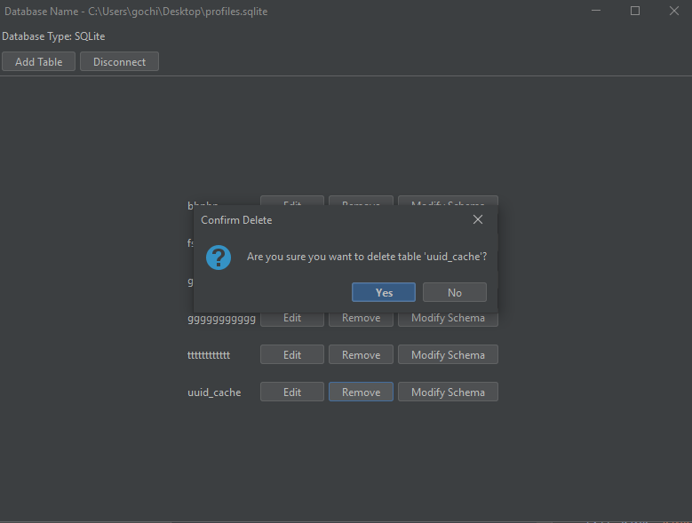 - Delete Existing Tables: Select a table and choose to delete it, with confirmation to prevent accidental deletions.