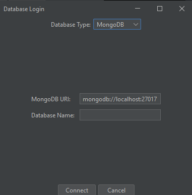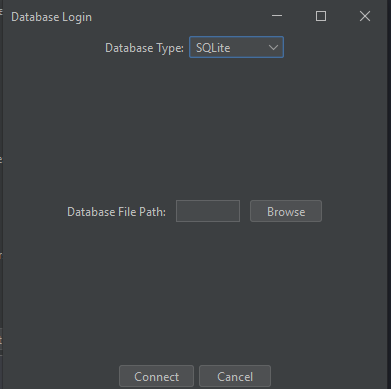 Upon launching the application, you are presented with a selection screen to choose the type of database to connect to. Each database type has its own login interface to capture all necessary connection parameters.