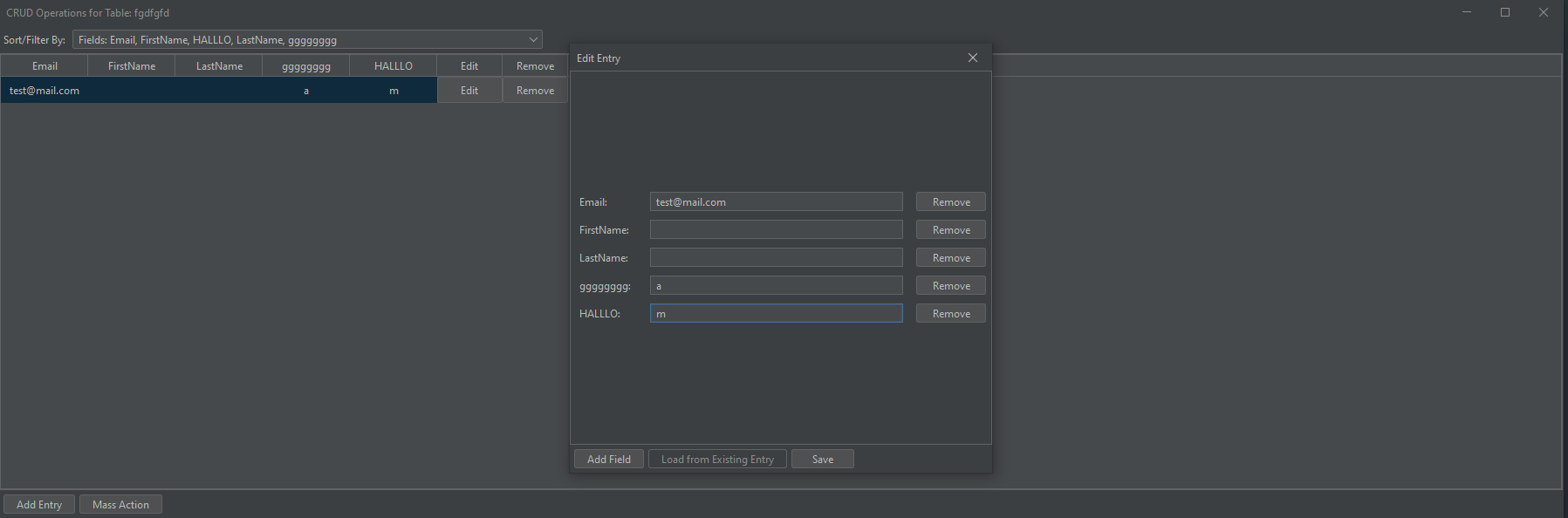 - Editing Entries: Modify any field directly in the data grid.