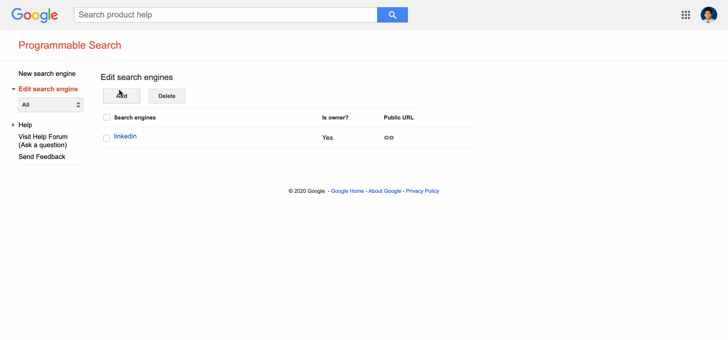 - Go to Google's programmable search console
