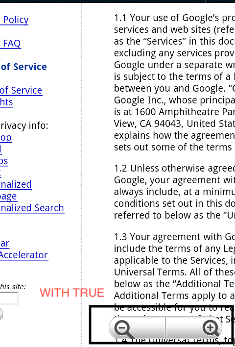 The built-in zoom mechanisms comprise on-screen zoom controls, which are displayed over the WebView's content, and the use of a pinch gesture to control zooming.