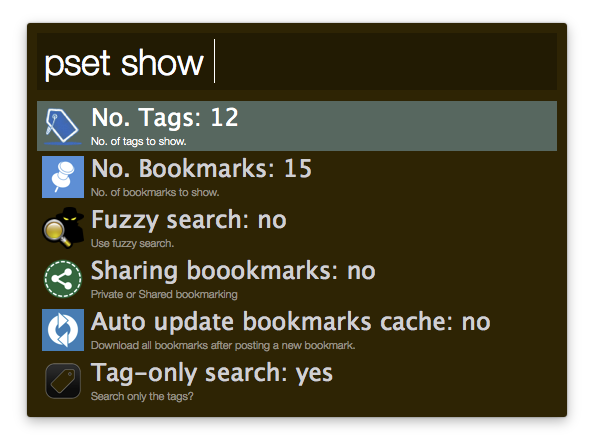 Add capability to search the bookmark within Alfred- Add popular (public) tags to the tag suggestion list.