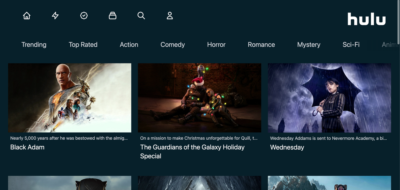 Hulu clone is an UI web application which is built using Next Js as frontend framework and tailwind CSS as styling framework. This clone fetch the data from API The Movie Database that you can get from api.themoviedb.org. The making of this clone is instructed by Sonny Sangha.
