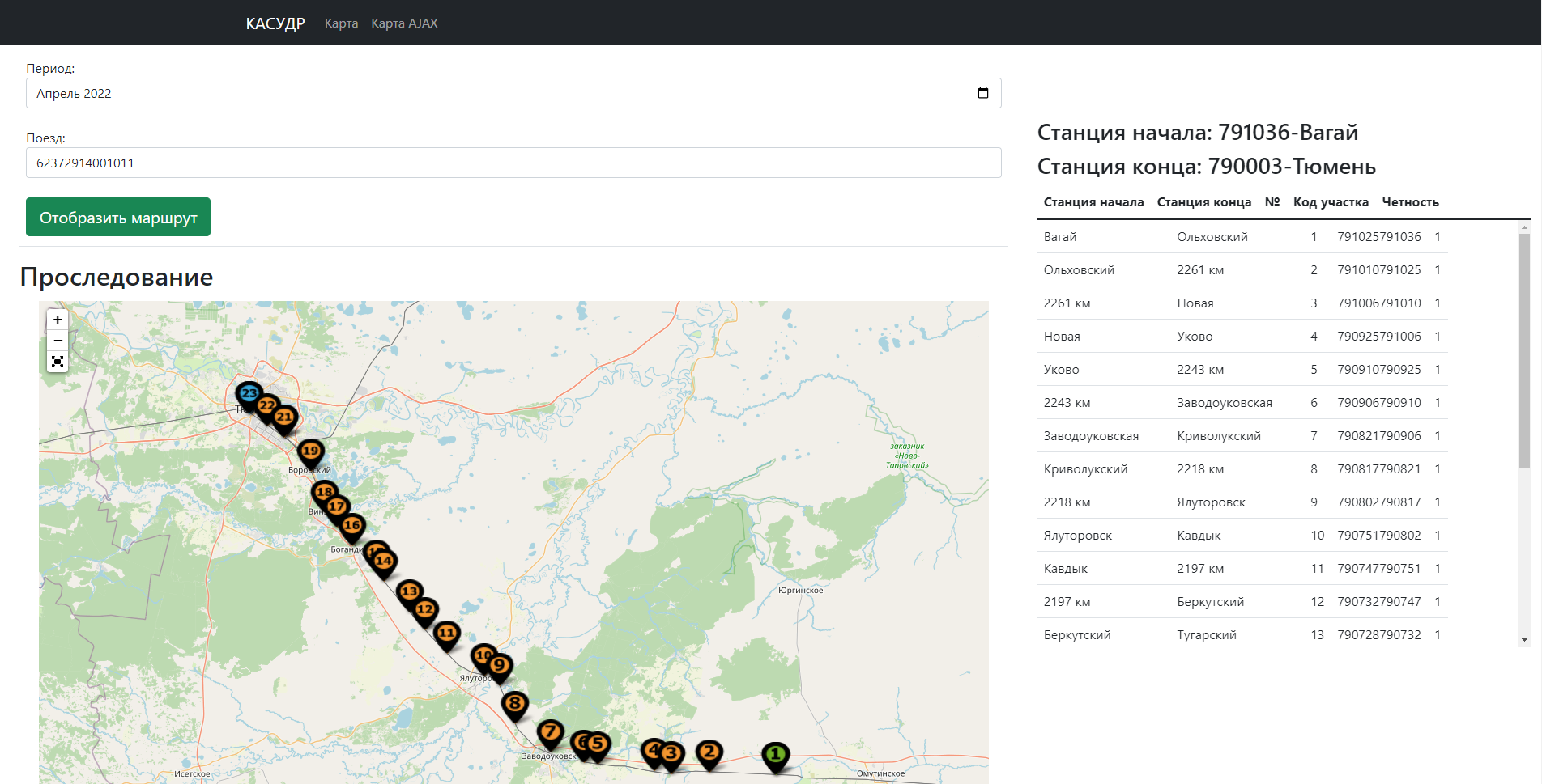 MapTrainPatch веб приложение с картой Django - фронтед Визуализация проследования грузовых поездов Используется для внутренних корпоративных целей
