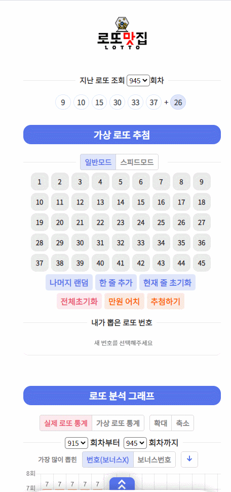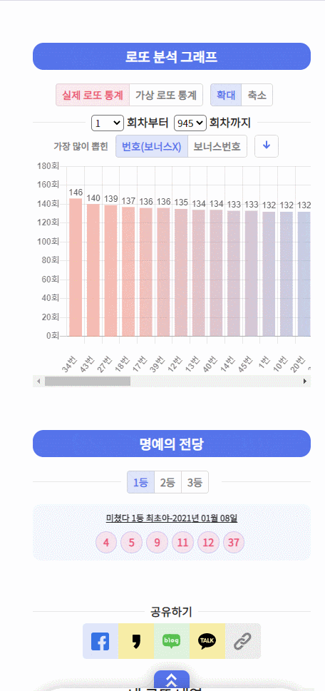 모든회차의 로또 번호와 유저 통계, 그리고 가상추첨까지!