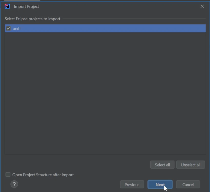 Notes: 1. Make sure that you are using the same JDK compiler version for both eclipse and IntelliJ, or you may get an error when you open ARX in eclipse again. 2. Click on the figures to enlarge them.