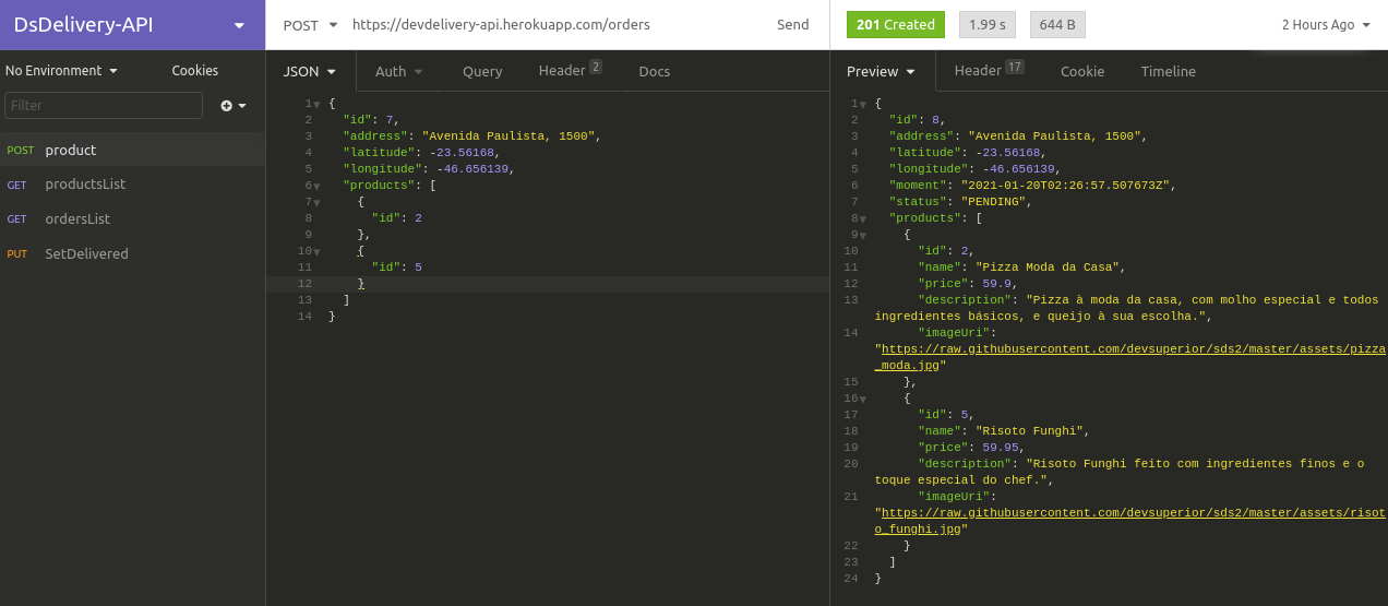 git clone https://github.com/iamgrodrigues/dsdelivery-api.gitIf you have a SSH key registered in your Github account, clone the project using this command:
