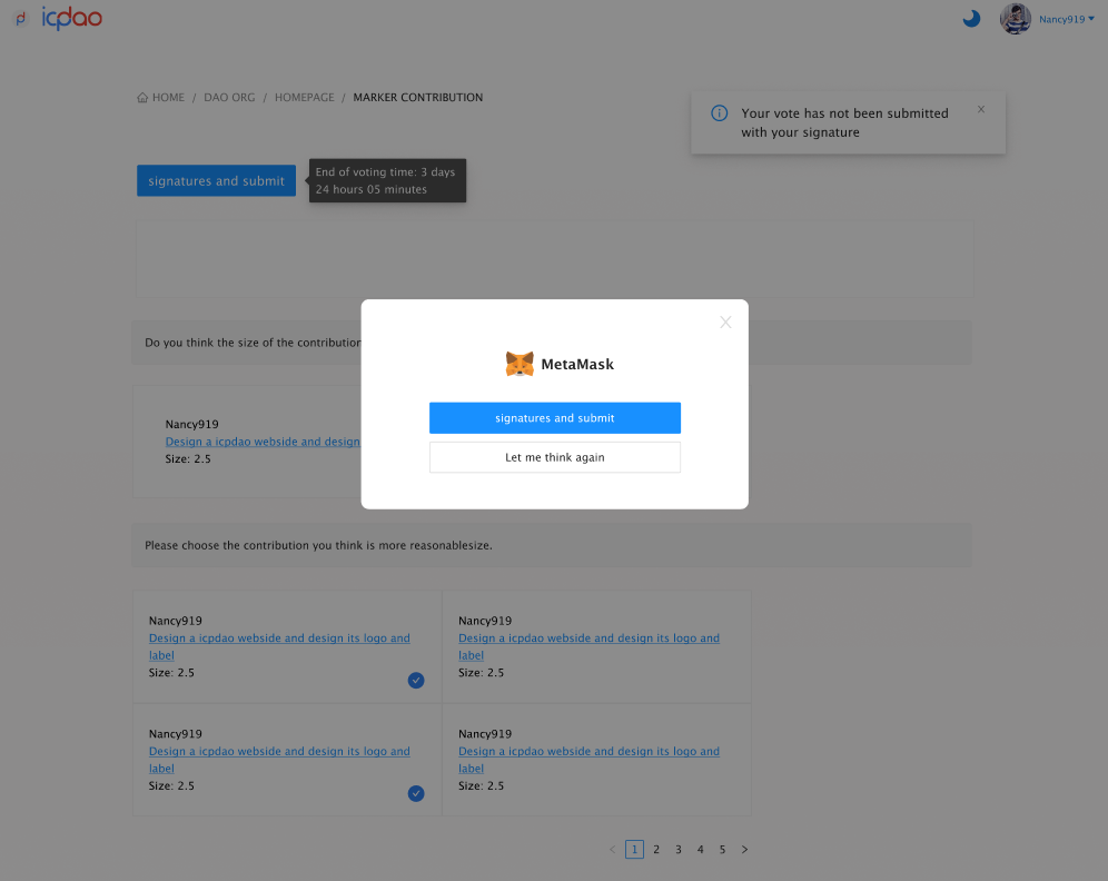 signatures and submit: return to the voting page