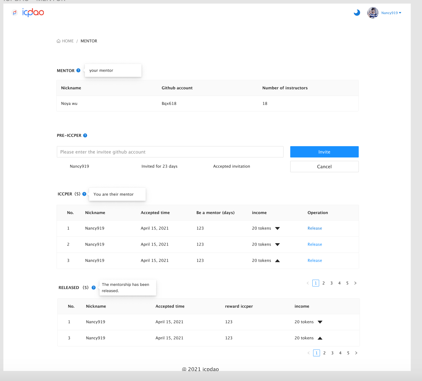 modify the explanation of "pre-icpper": You are their mentor, you can cancel the invitation at any time before they participate in contributing and become a mentor