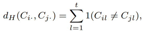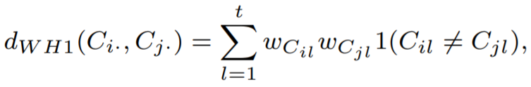 For '0' and '-', '-' is point missing and it is possibly '0'. Thus it should have lower weight. For 'A' and 'C', During the cell propagation, '0' differentiated to 'A' and '0' differentiated to 'C'. Thus it should have larger weight. We can assign weights as below equation.