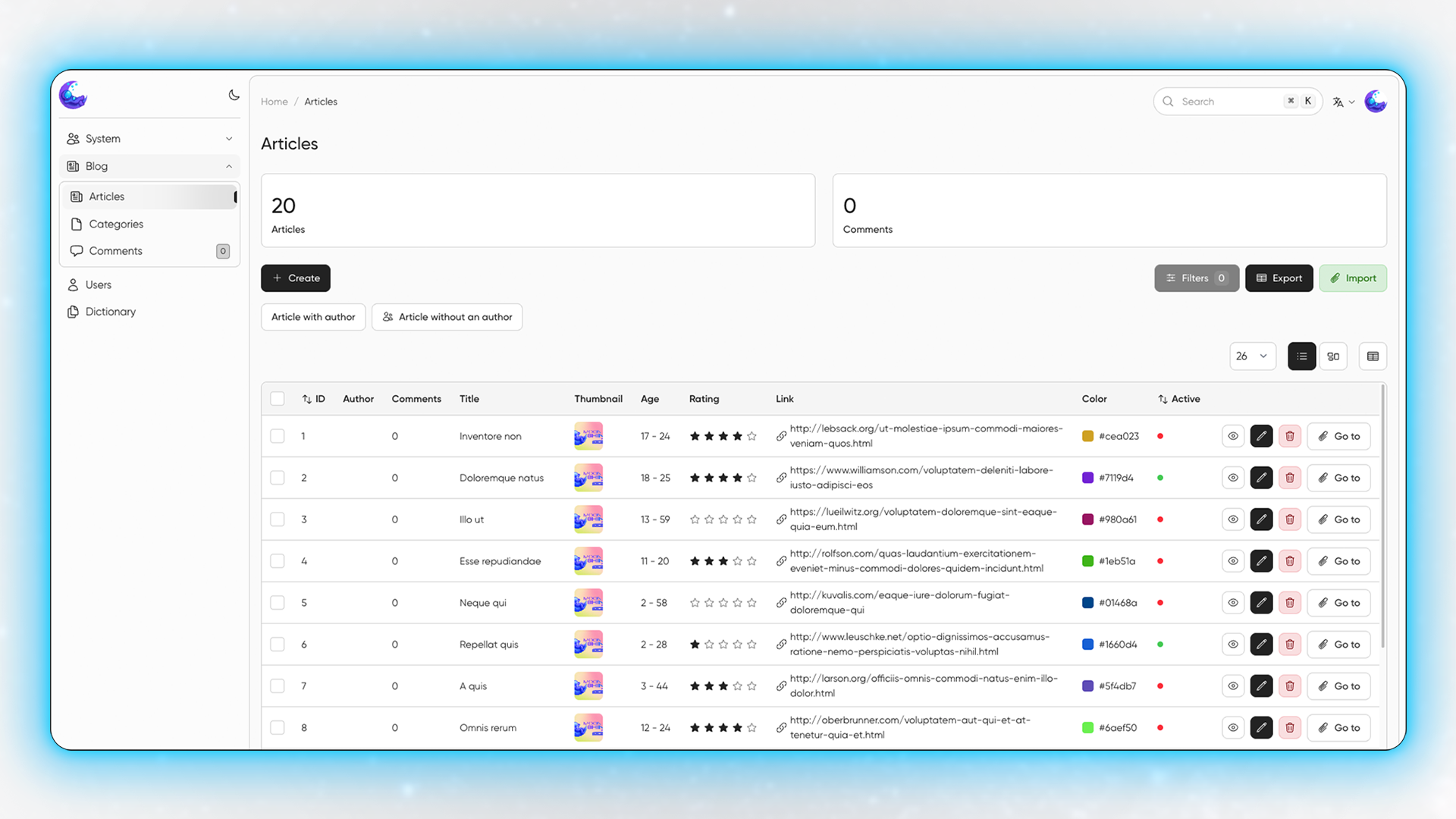 What does moonshine mean? It's not exactly "moonlight" - my idea is the name "moonshine". The term means the independent production of a drink in illegal conditions under the cover of night :). So I developed this admin panel at night in my free time under the moonlight;)