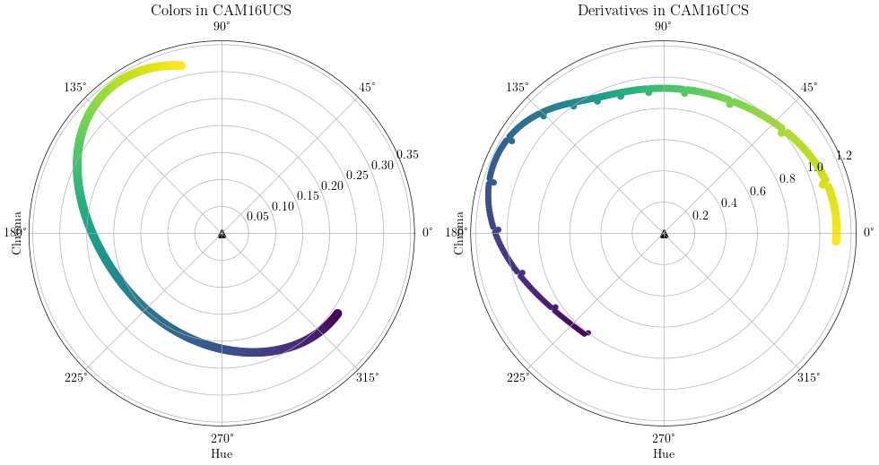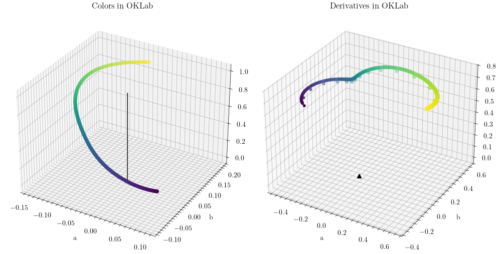 To visualize a particular axis of lightness, chroma, or hue, the optional flags -l, -c, and -h can be used respectively. If none are provided, the default is to display a 3D plot with all three (-lch).