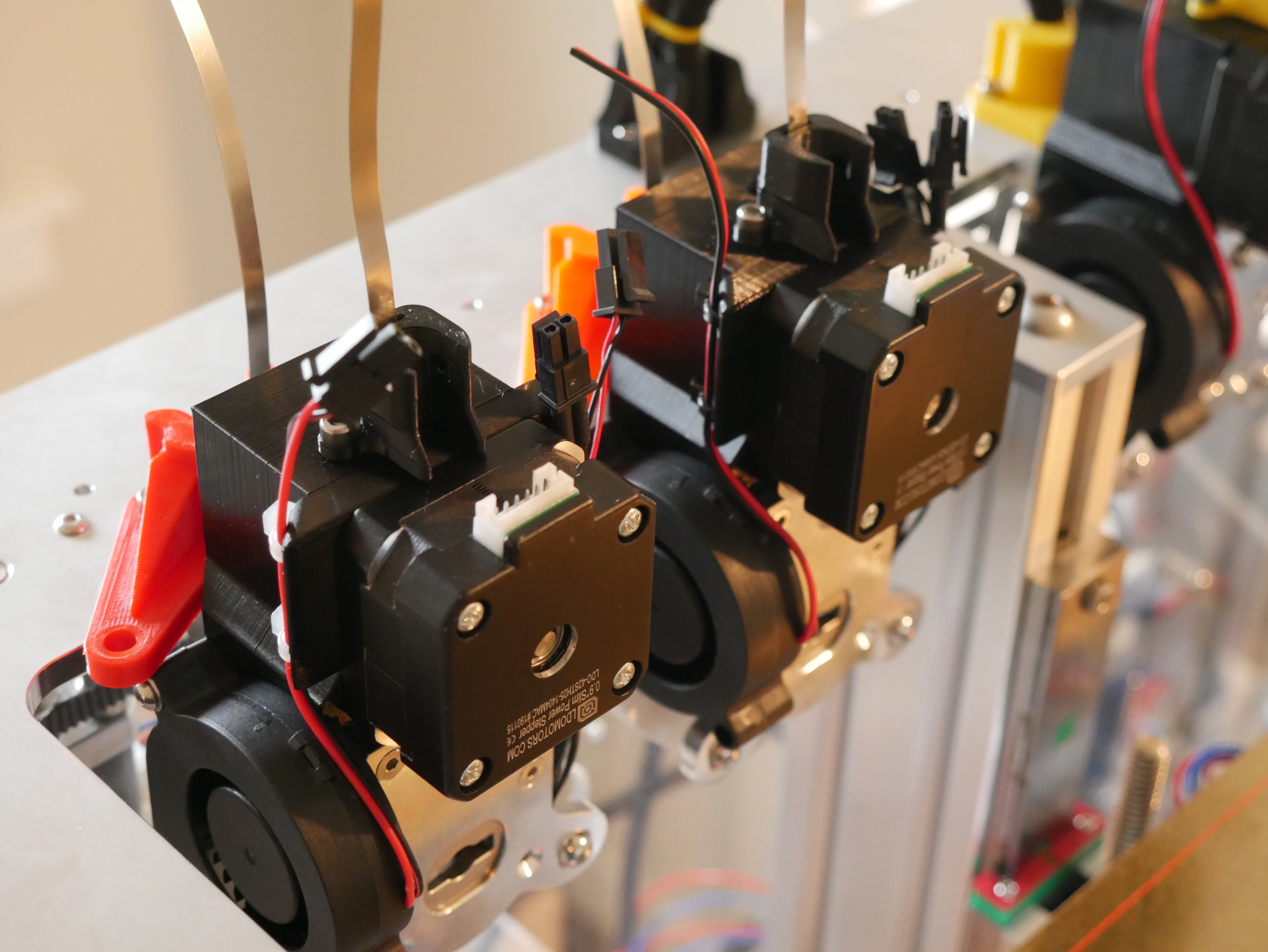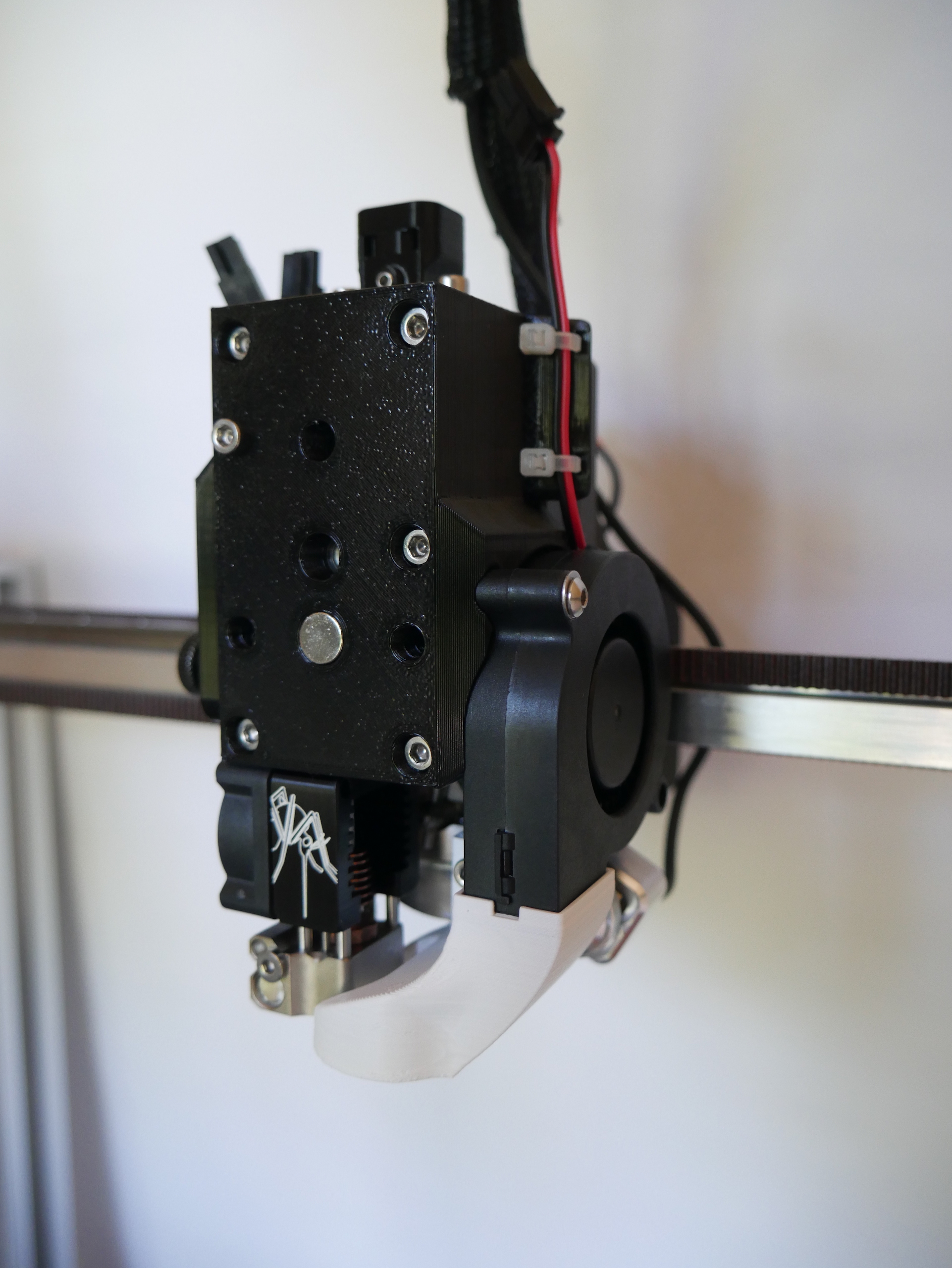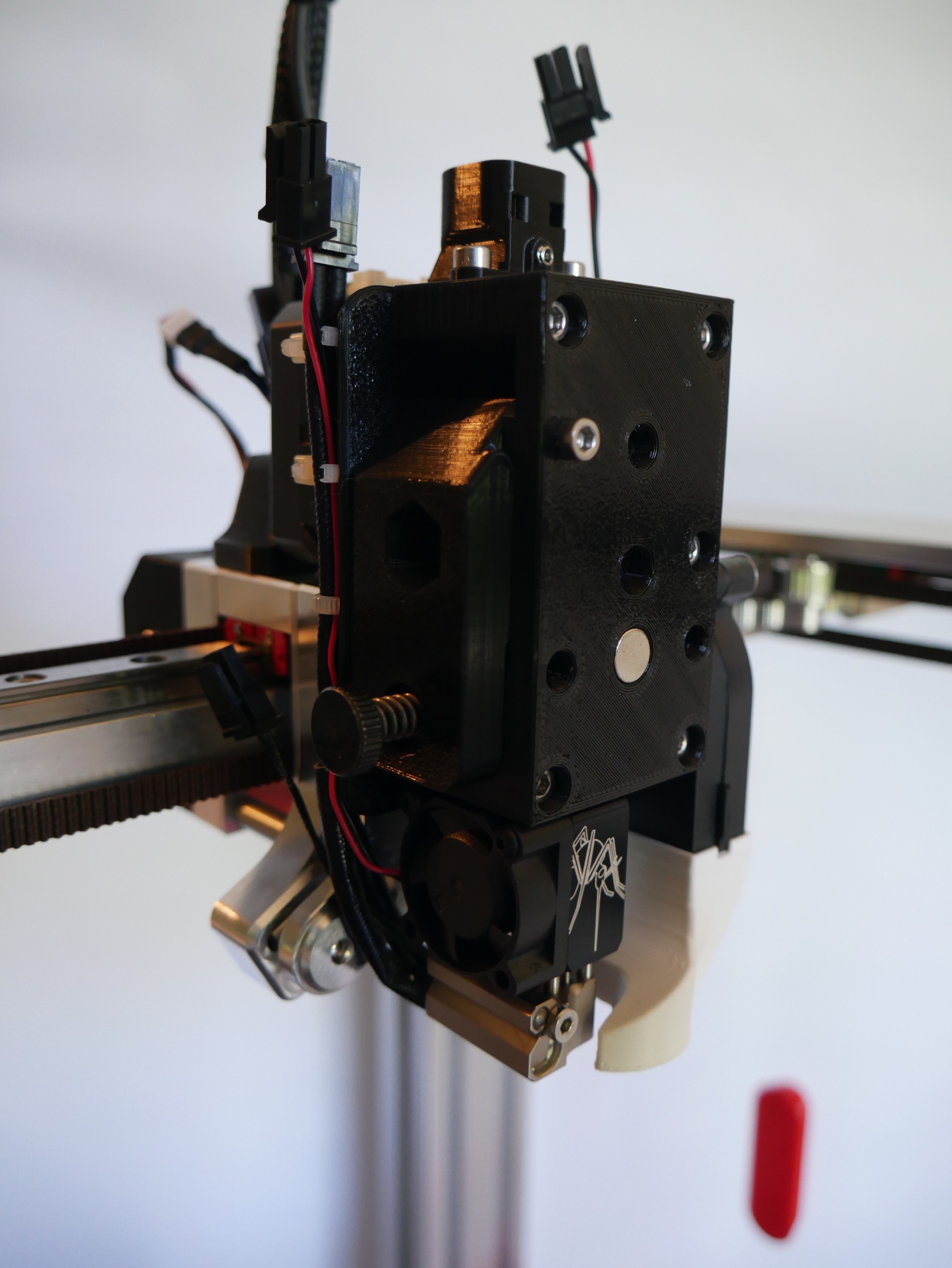 Currently this project is in Beta. Now is a good time to print an extruder and try it out for yourself. Before this release, several prototypes were printed and tested to failure. Improvements to the design have been made that should overcome these issues. Numerous print-ability tweaks have been made to eliminate the need for support material when printing. Print-ability, usability and general fit/finish should be fine for general use. I'm installing printing 4 on my tool changer so I can work on multi-material and multi-color printing.