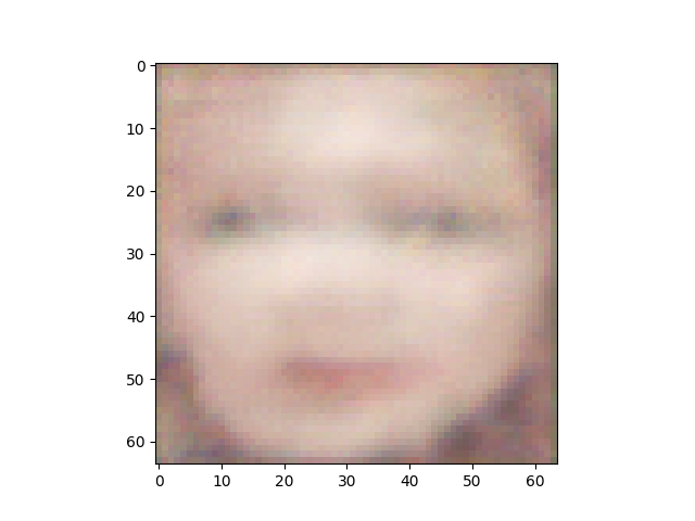 Generates a very very blurry image that almost represents a face (e.g. can see where the eyes and other facial features exist) Gathered more data and it seems to be producing better images for the VAE.