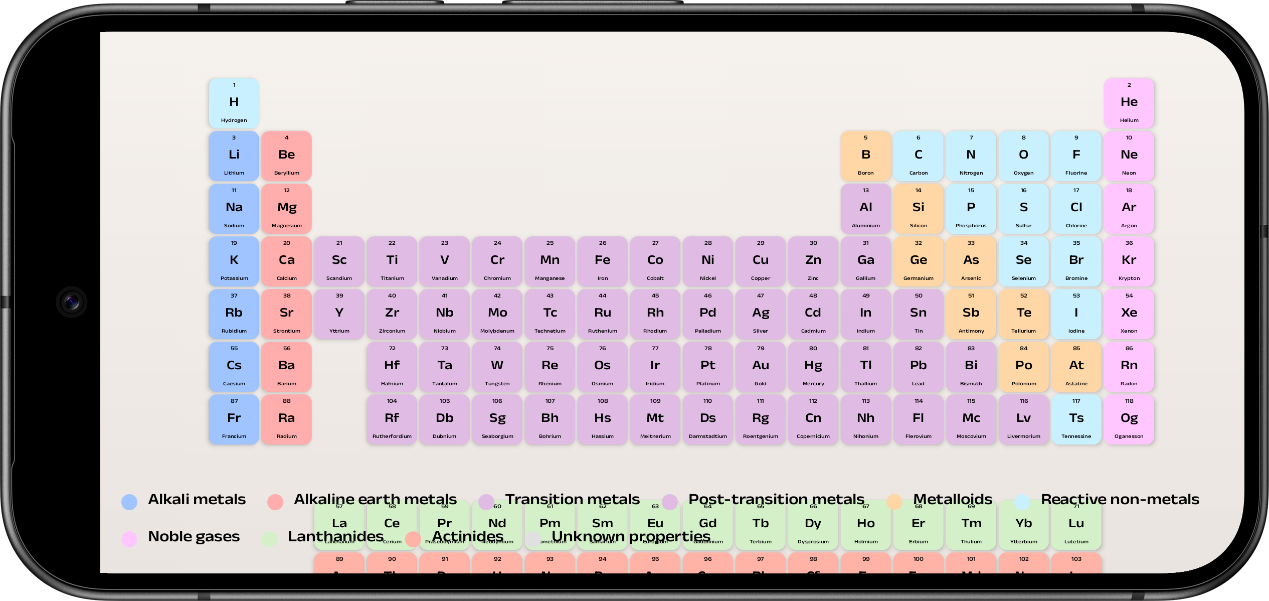 - Interactive Classic View: A scientifically accurate periodic table layout that is fully interactive with pinch-to-zoom and pan gestures in landscape mode.