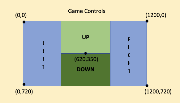 Instead of the 20 landmarks, I only took landmark 0 (at the base of the hand). This module tracks the base of the hand in relation to the user's camera frame on a plane of about 1200x720 to develop the controls: UP, DOWN, LEFT, RIGHT.