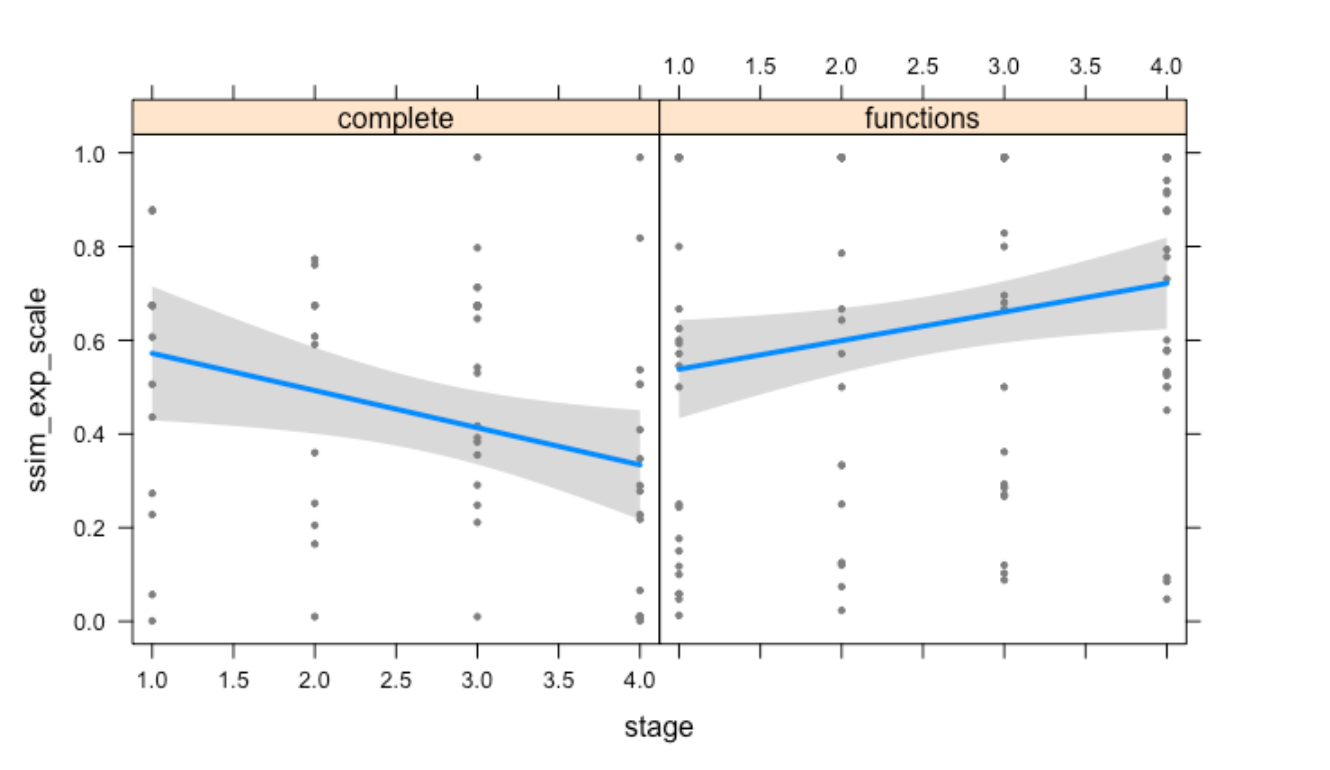 a2 <- gam(ssim_exp_scale ~ s(stage, k = 3, fx = TRUE, by = comparison_type) + comparison_type, data = df, family = gaussian())