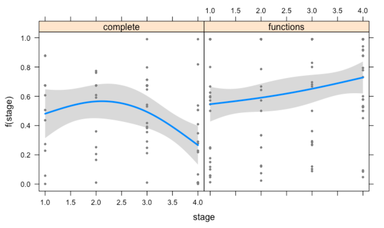 visreg(a2, xvar = "stage", by = "comparison_type", data = df, method = "REML")