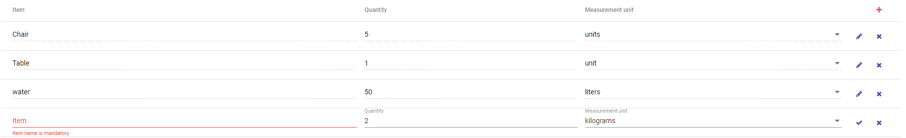 It extends @angular/cdk/collections DataSource in order to include a row structure, allowing row creation, inline row edition, deletion and validation.
