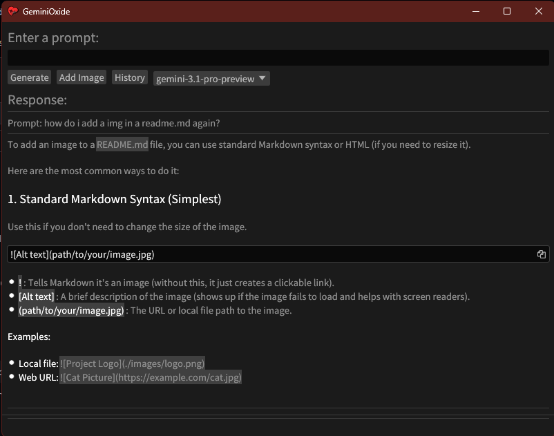 A Rust GUI application that provides an interface to Google's Gemini AI, with support for text prompts and image inputs.