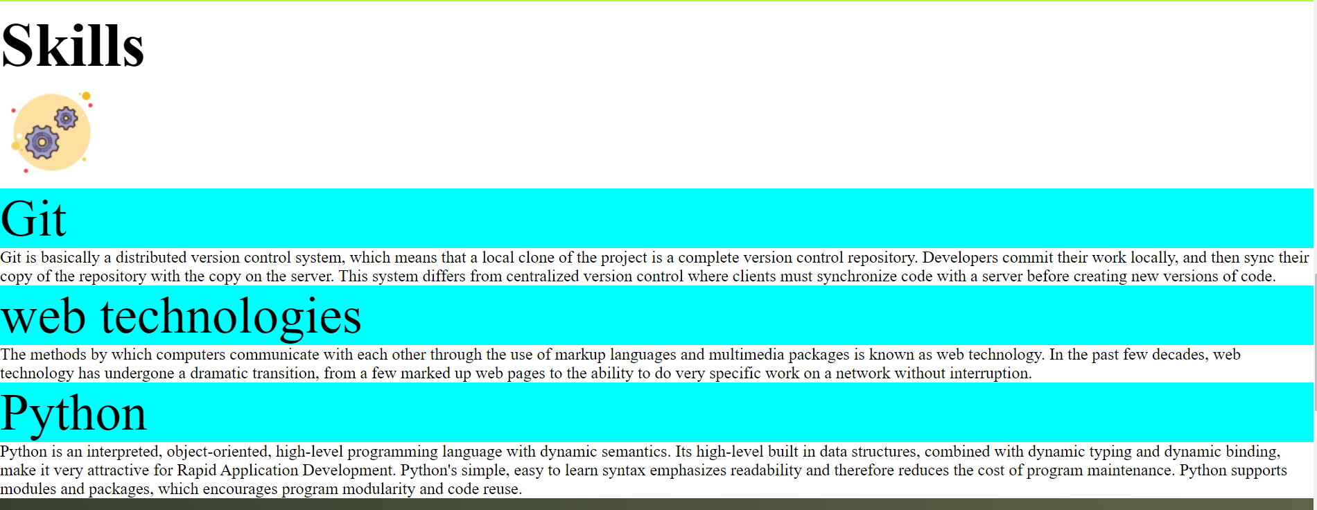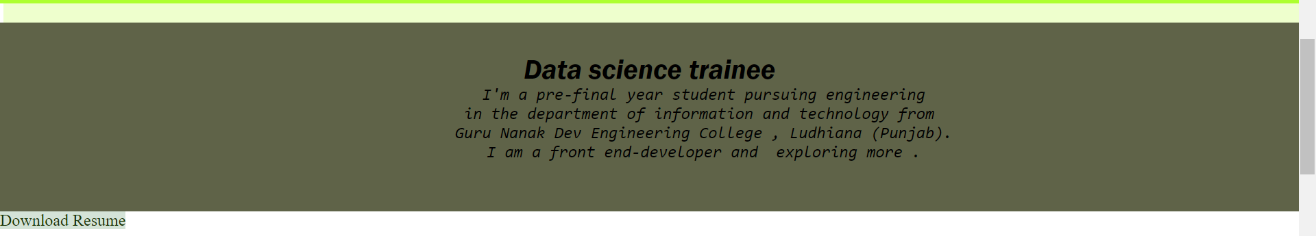 I have made a portfolio where with the use of HTML and CSS . As we know today is the era of technology and to apply jobs online we need an resume where we can provide our all the details - personal , skills, experiences and may add link of projects showing our work and we can also update it anytime. This saves a lot of time.