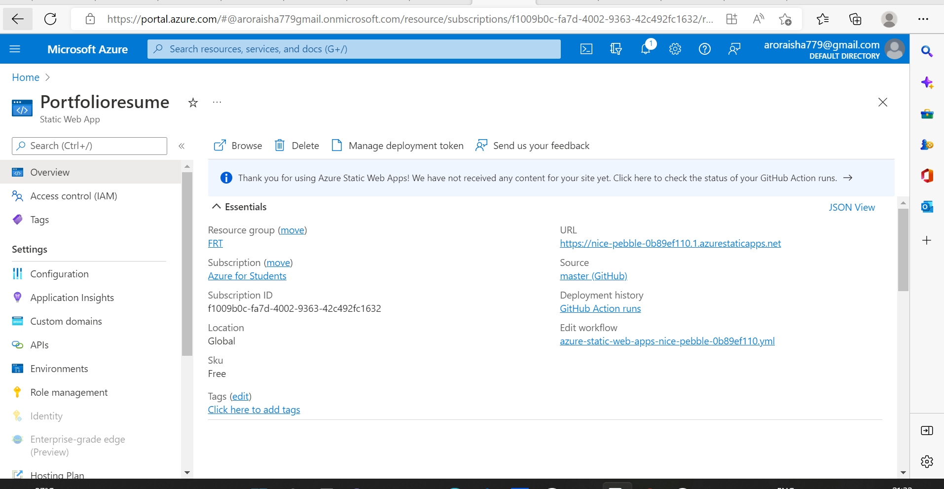 #Primary Azure Technology: Static Web App