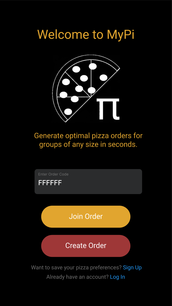 MyPi is a mobile application that allows large groups of people to generate ideal pizza orders. An organizer at a large event can create an order, which all attendees may join and select their pizza topping preferences. Using a modified vertex cover algorithm over a bipartite mapping of candidate pizzas to users, an order that will satisfy everyone's unique preferences is generated.