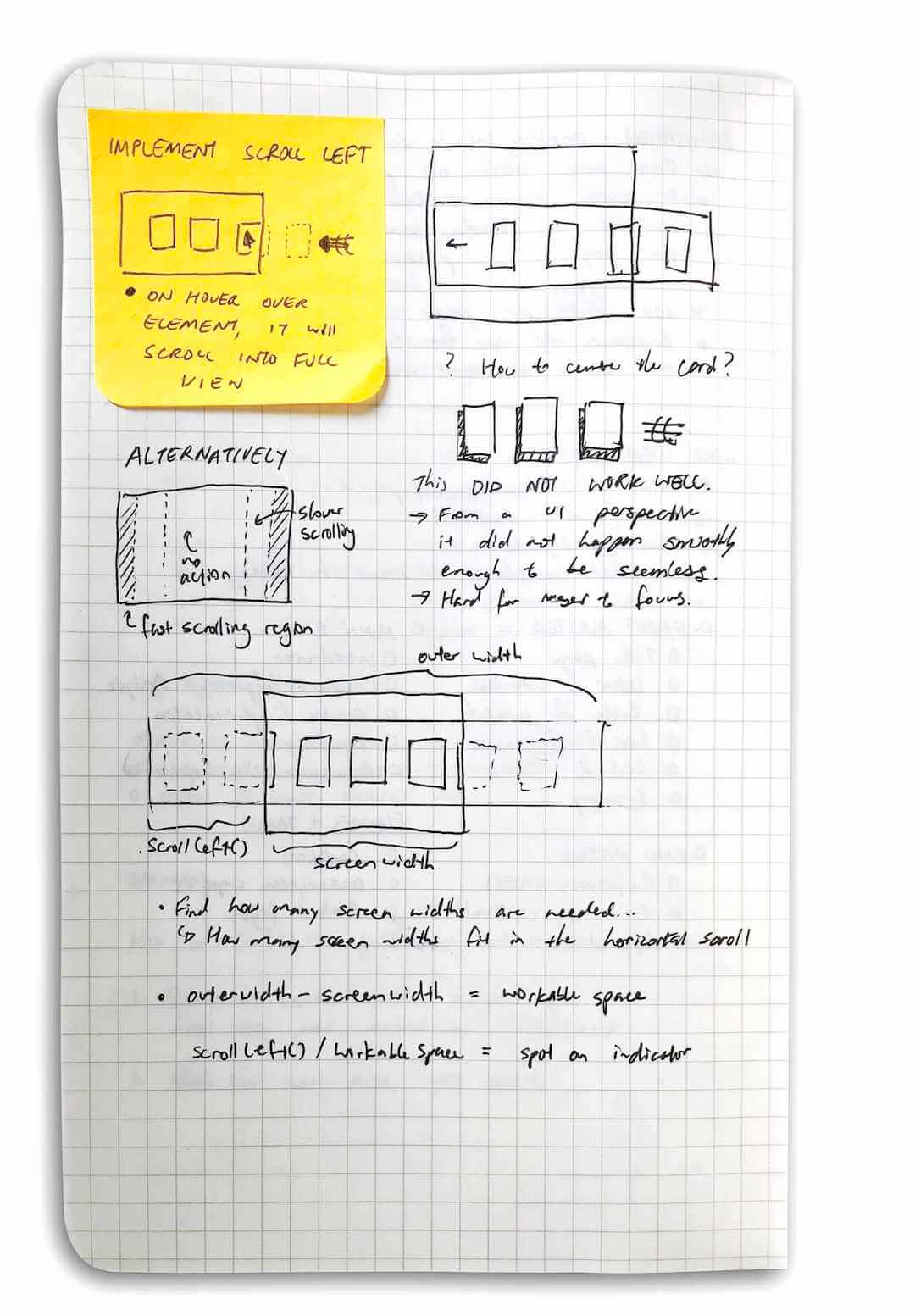 I tried interacting with my website for the first time using a mouse and quickly found that the exporlation section was very difficult to navigate. On a trackpad, two finger side scroll and on touch-enabled devices, a simple swipe gesture was enough for horizontal scolling. However, this is not the case with a mouse.