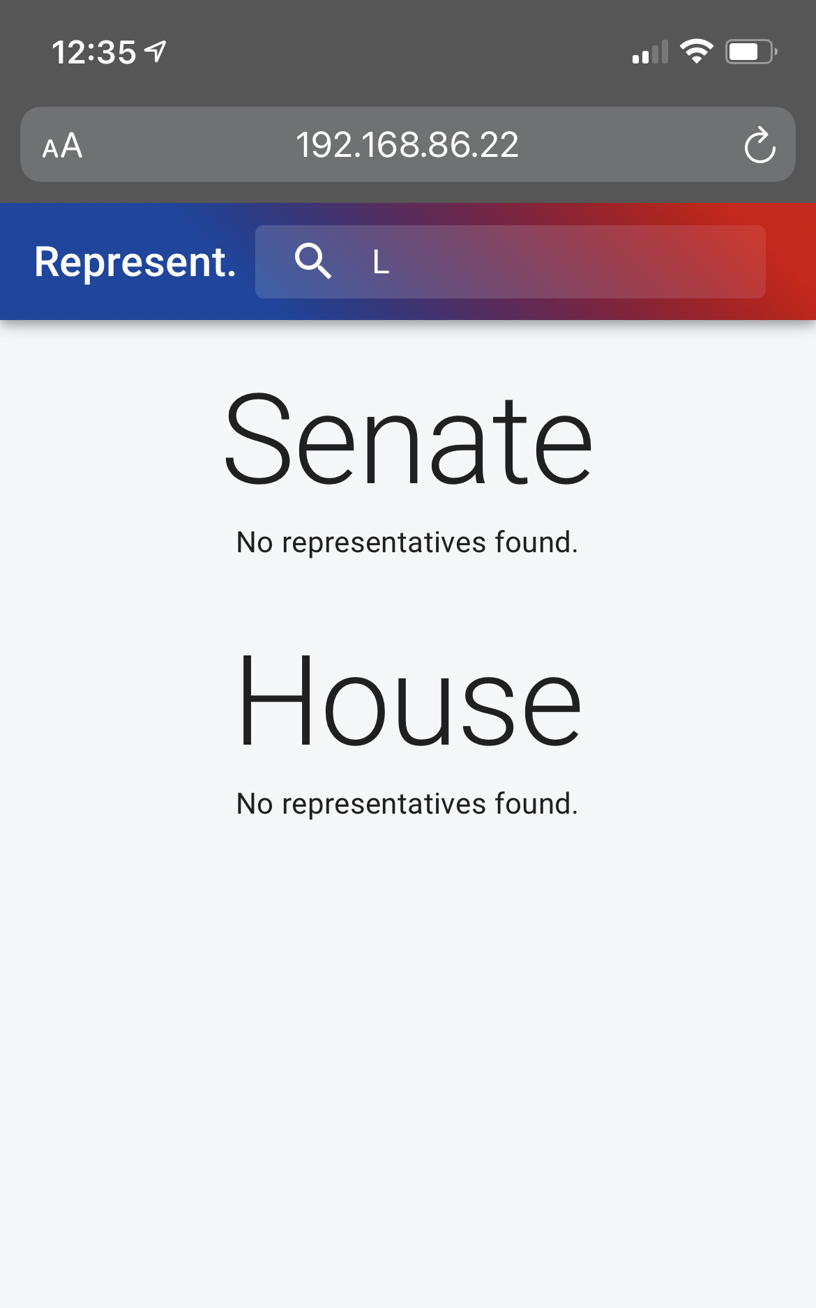 Should render an updated list with all of the representatives that contain the query.