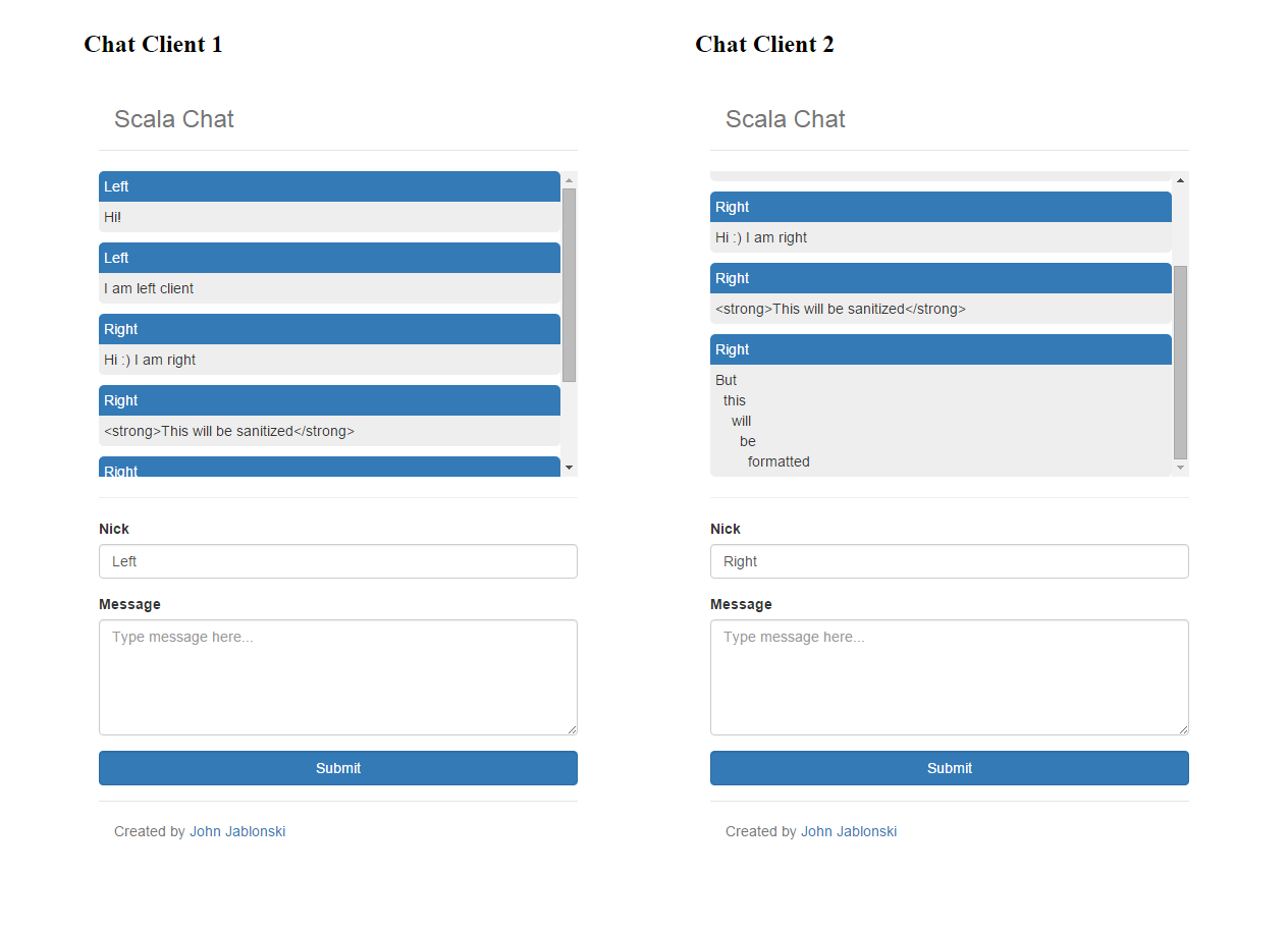 Latest version demo can be checked here: https://scala-chat.herokuapp.com/.