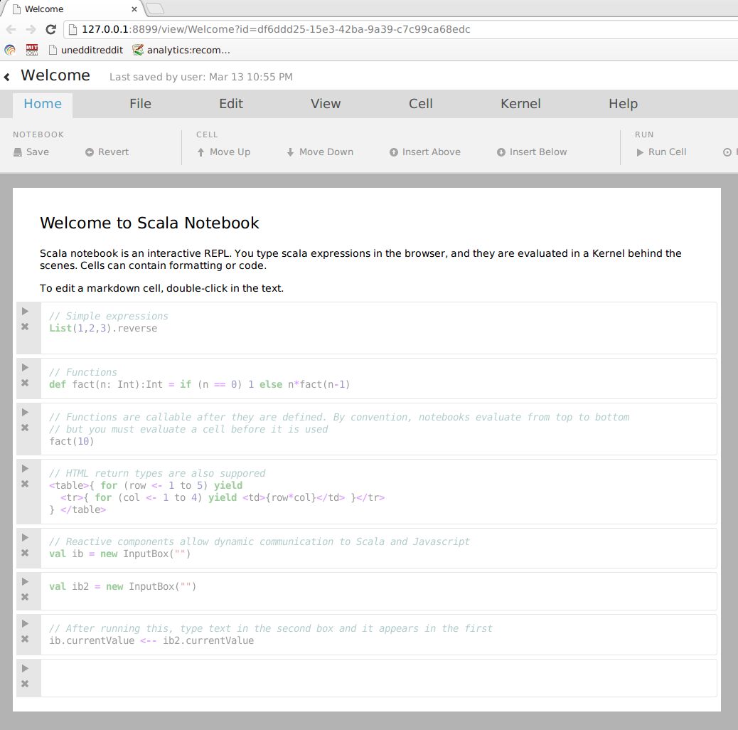 • Supports mixing Scala expressions and markdown, letting you create rich, interactive documents similar to Mathematica