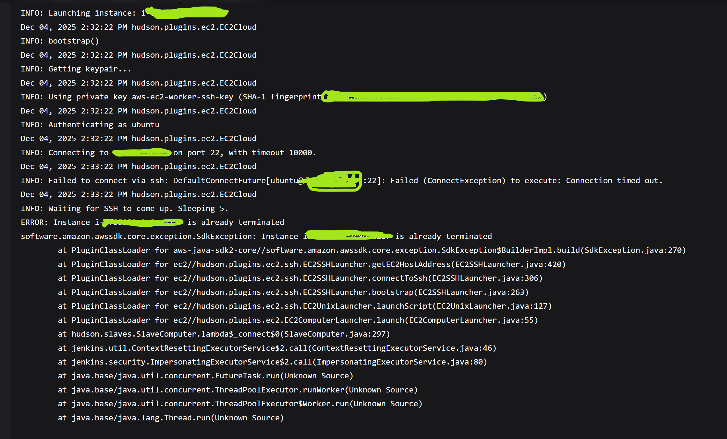 Originally reported by nehrusani, imported from: Jenkins EC2 plugin version bug 2043.v483cc2854116 teminates instance immediately just after launch