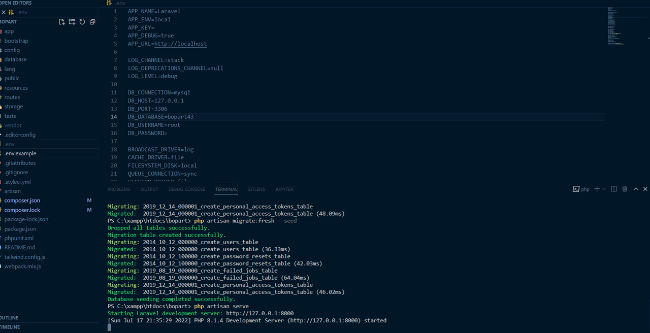 ​ Put the same name of the database that you have created on the .env file, in DB_DATABASE ​