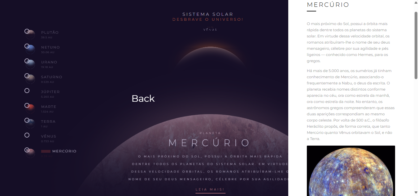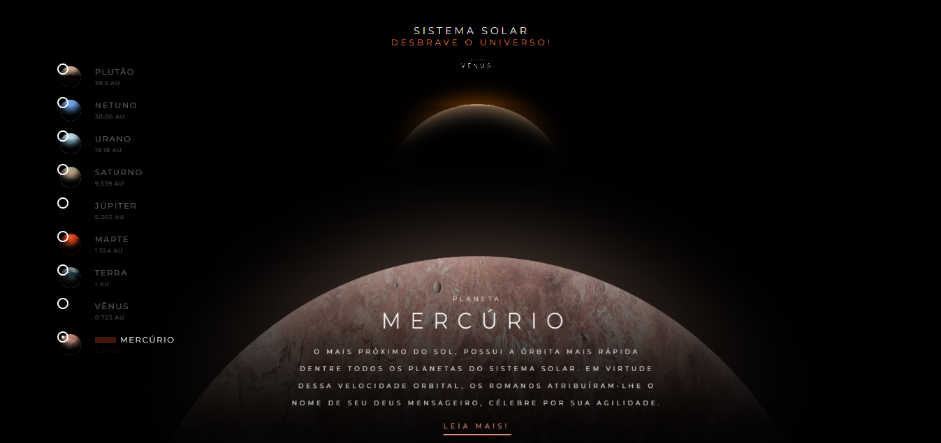 O Explorador do Sistema Solar é uma aplicação front-end desenvolvida com foco em interatividade, educação e design espacial responsivo. A proposta oferece: