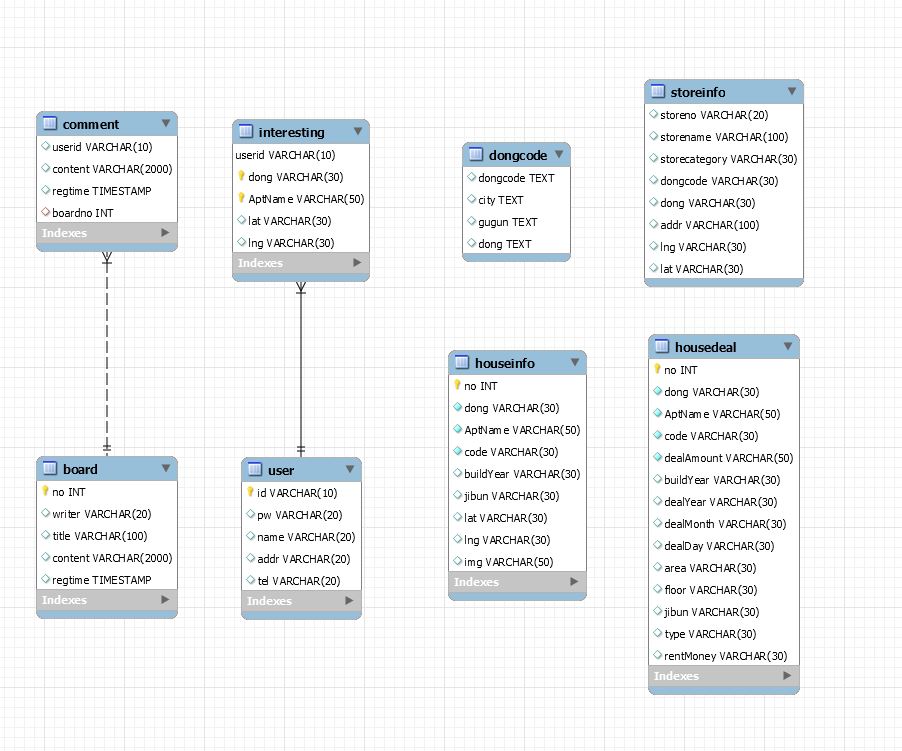 OldHouseNewHouse 부동산 실거래가 웹 프로젝트 (헌집줄게 새집다오) 👬 Team Member 김나영 장현웅 🏠 헌집줄게 새집다오 Website 1. main 2. search 3. commercial area information 4. transaction history 📝 ERD Diagram