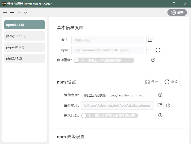 - 一站式:支持多种包管理器,支持多种设置项