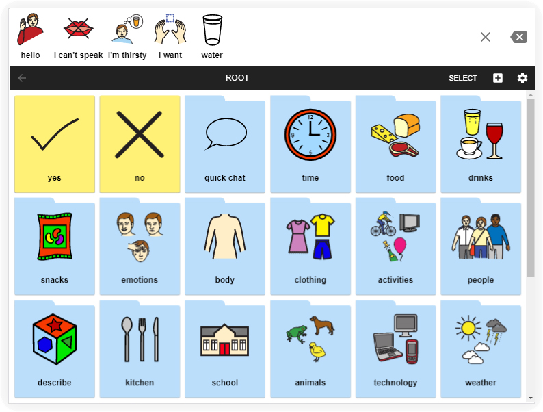 Cboard is an augmentative and alternative communication (AAC) web application, allowing users with speech and language impairments (autism, cerebral palsy) to communicate by symbols and text-to-speech.