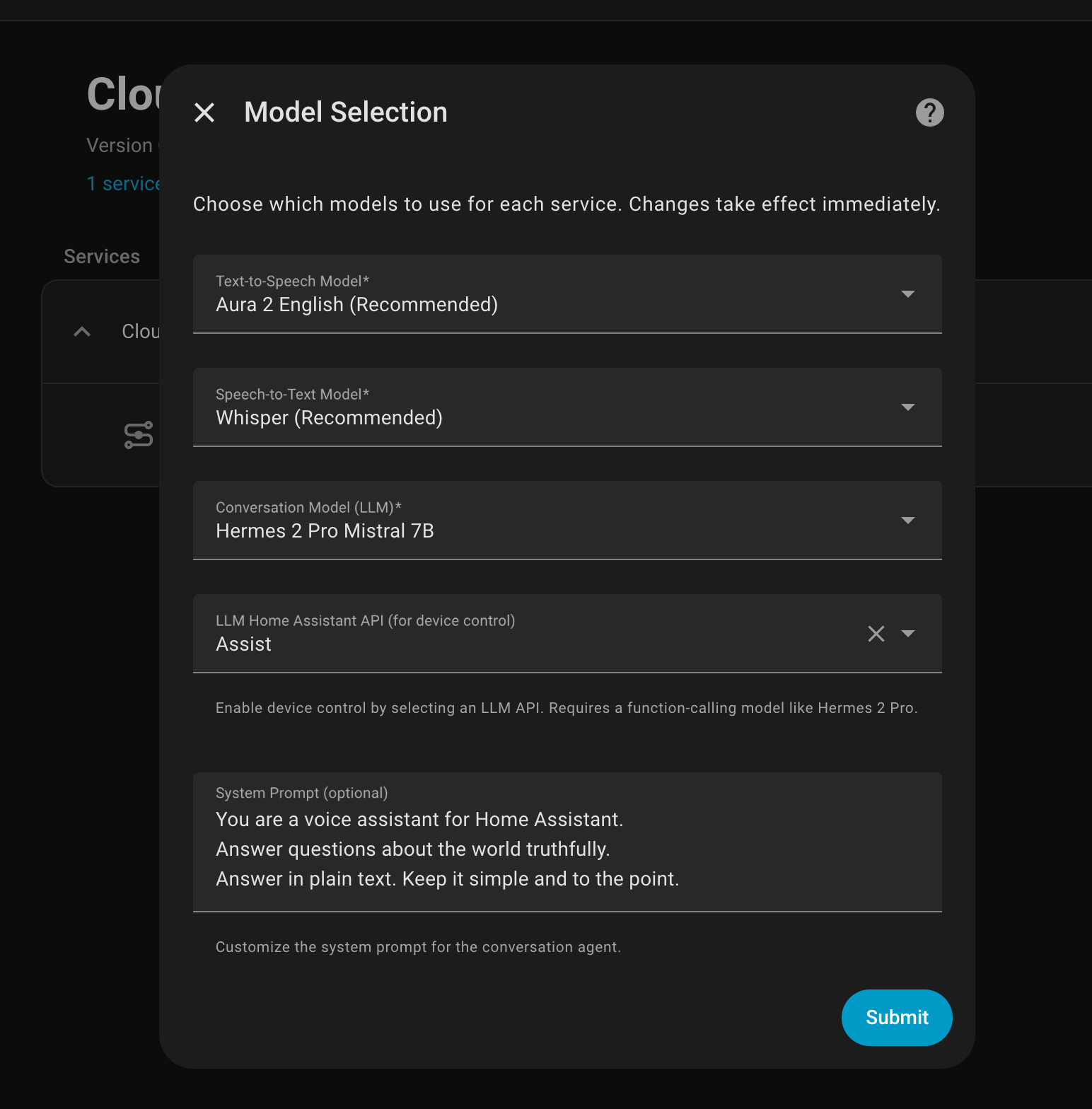 - LLM Model: Choose from 4 conversation models (all with device control)