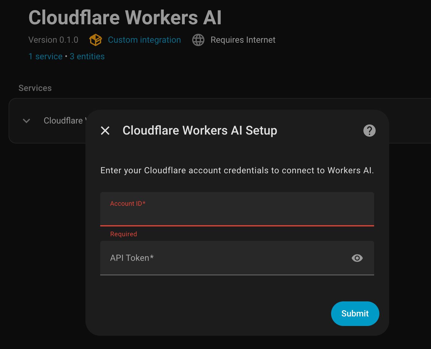 https://github.com/jonasmore/Cloudflare-Workers-AI-Home-Assistant-Integration - Select category: "Integration"