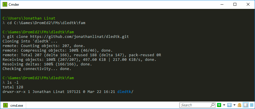 Start a new instance of the command interpreter cmd and locate your FM's fam/ folder before cloning this repository as a new family.