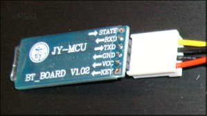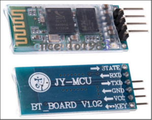 This method of using Bluetooth (BT) communications only requires an HC-series BT module, and a wiring connection. The BT module in this case is an HC-05, HC-06, HC-07 or HC-09, mounted on an interface board operating in Slave mode. As slave-only modules are simpler to re-program, the example described here is an HC-06 slave-only module on a JY-MCU v1.02 board: