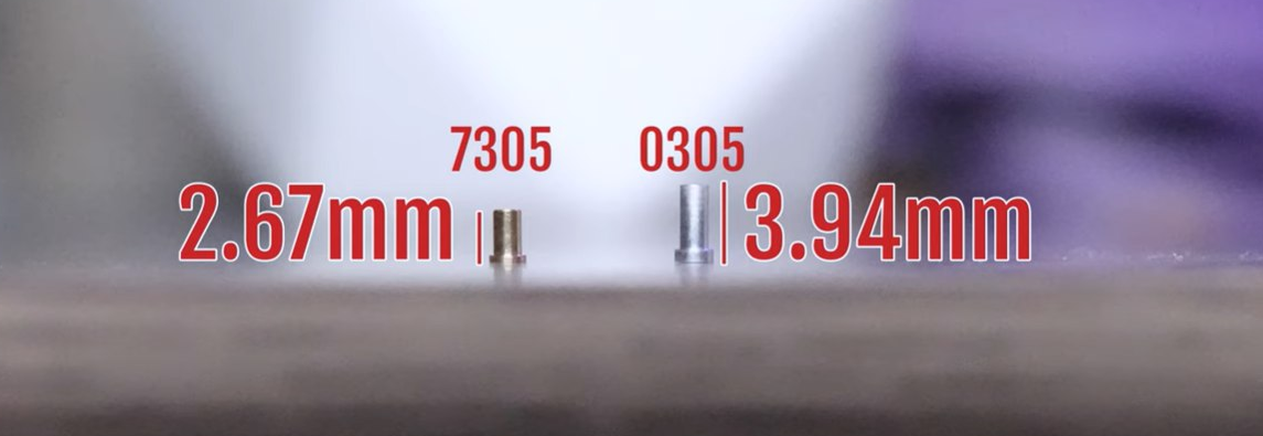 There are 7305 and 0305 ones, 2.67mm and 3.94 mm tall respectively, outer diameter 1.55mm (fits 1.50mm holes).