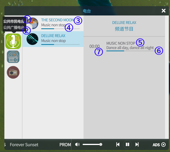 - 电台描述会显示在图中②处