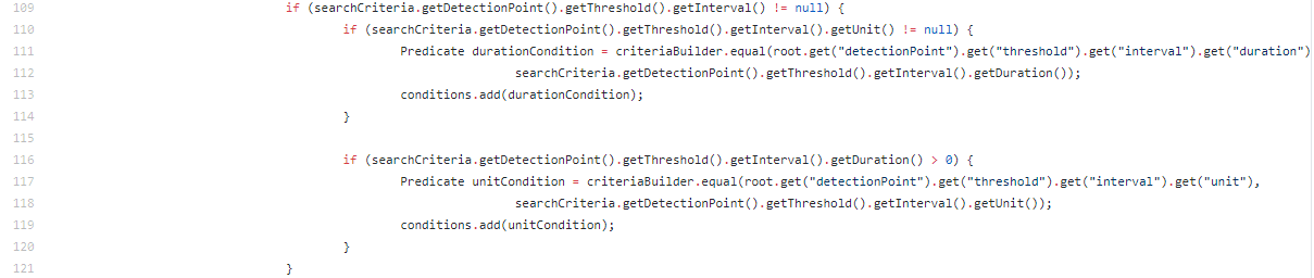 Aren't the if conditions in Ln 110 and 116 switched? https://github.com/jtmelton/appsensor/blob/f1ddb414f5ee636720eda8997d8e406171137977/storage-providers/appsensor-storage-jpa2/src/main/java/org/owasp/appsensor/storage/jpa2/dao/AttackRepository.java#L109