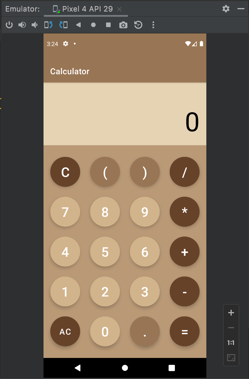 dig4634-calculator This is a calculator developed on Android Studio for class DIG 4634 - Designing Wearable Apps. The design is included in activity_main.xml and the app and functionality is run with MainActivity.java. The emulator used was a virtual Pixel 4 API 29.