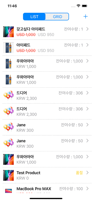 | 목록 업데이트 | List-Grid 전환 | 신상품 등록 알림 |