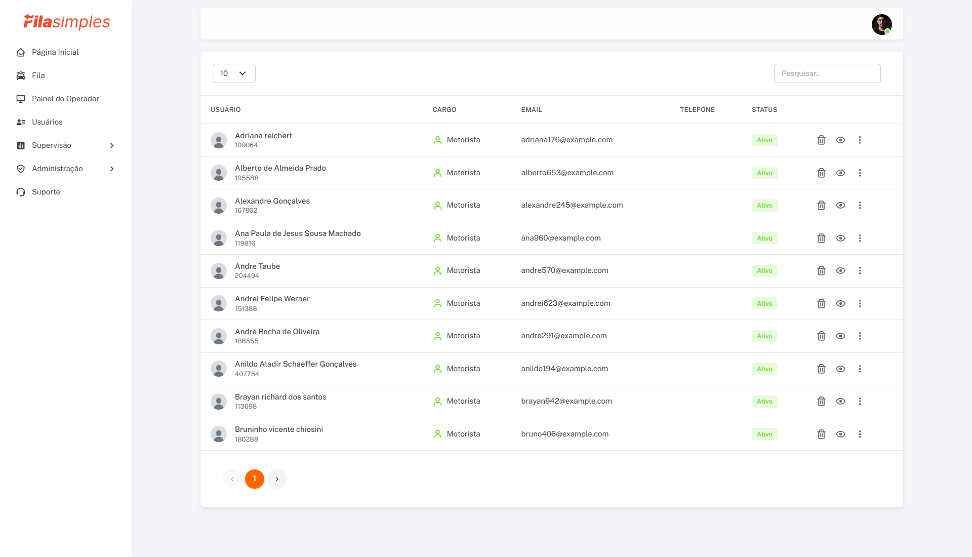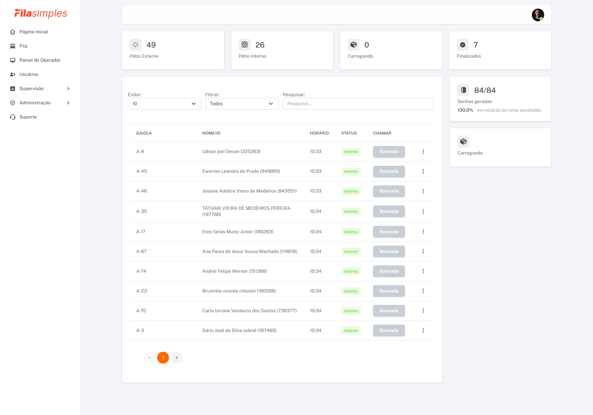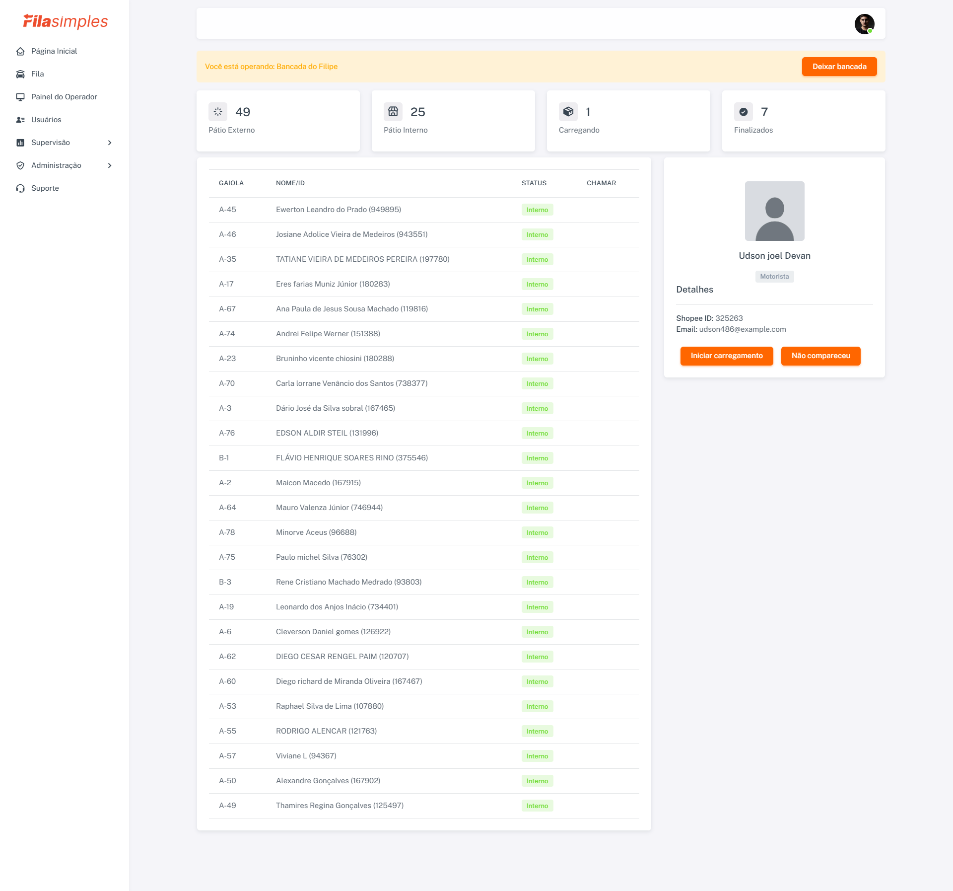 - Painel em Tempo Real: Permite que supervisores monitorem motoristas na fila e os aloquem para operadores.