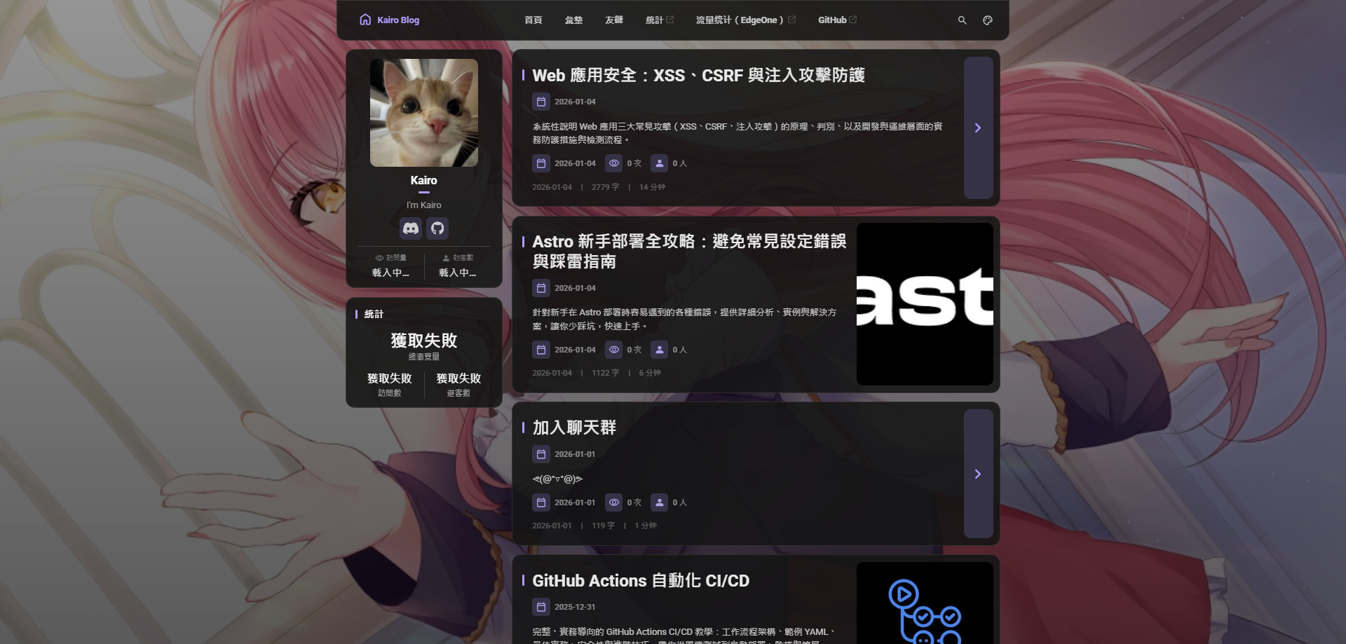 astro.config.mjs設定site為你的正式網址(很重要)。 - 圖片最佳化:部署時配合 CDN(如 Cloudflare)可加快載入速度。